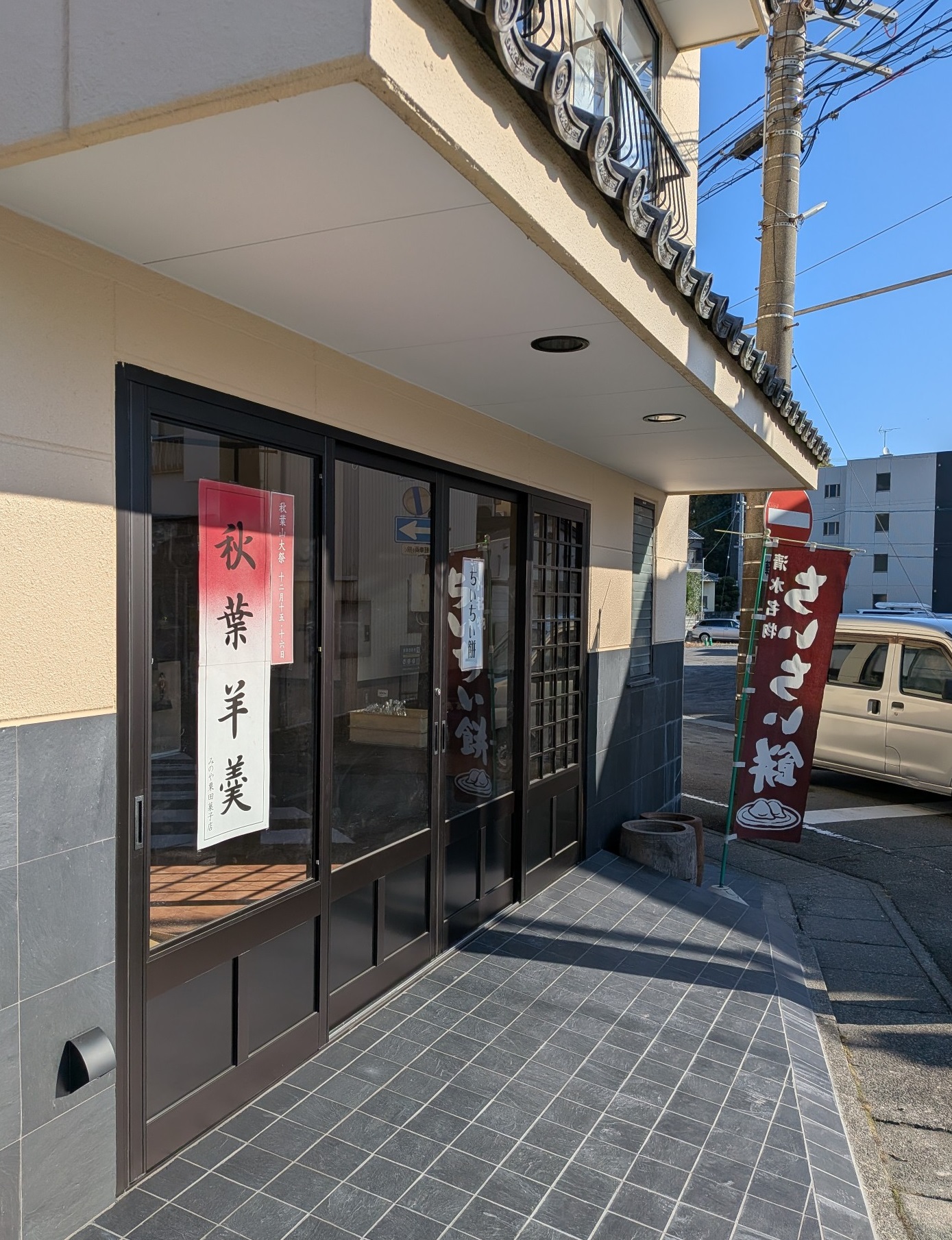ちなみに 12月15日、16日はすぐ近所の『秋葉神社』のお祭りで、 みのや栗田菓子店様の前の道路も歩行者専用に制限されて 大変賑わいます。 お祭りの際は 是非 『みのや栗田菓子店』様にもお寄りくださいね。・・・売り切れてたらゴメンナサイ<m(__)m>