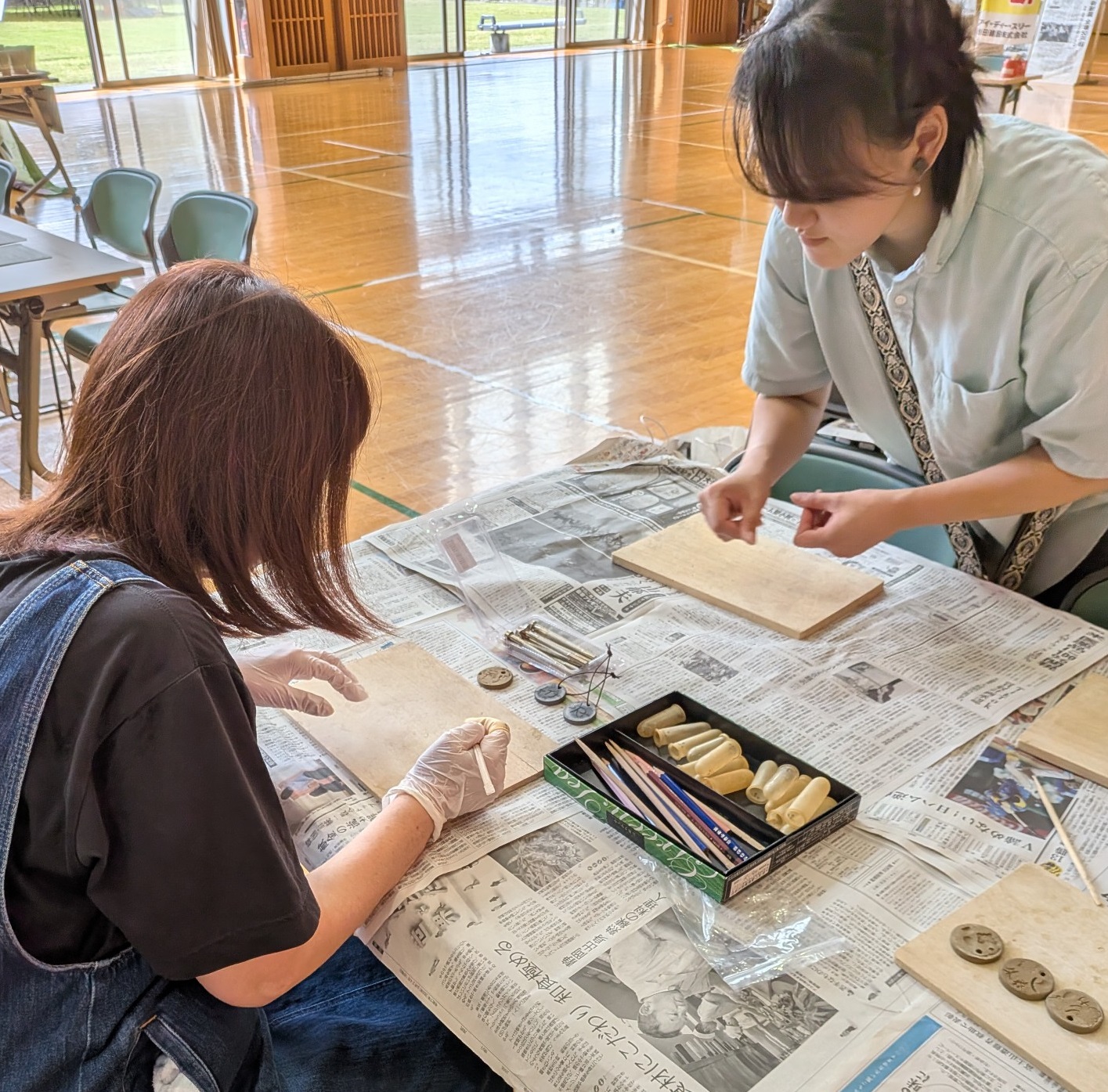 こちらは、瓦の素材でキーホルダーを造るワークショップです。