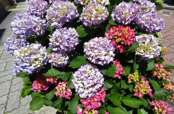 今年の紫陽花を見ていて気付くのは、色々な色の花が混在して咲いている事ですね。