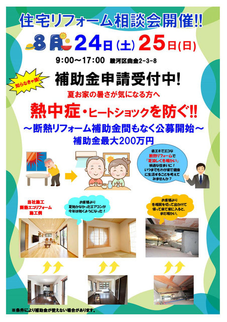 「断熱リフォームで家が暑い!!をなくす」相談会 2019年度リフォーム補助金申請受付中&エアコン工事特別価格☆★静岡市駿河区