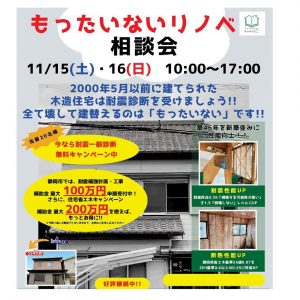 11/15(土)・16(日)【もったいないリノベ相談会】開催 静岡市駿河区